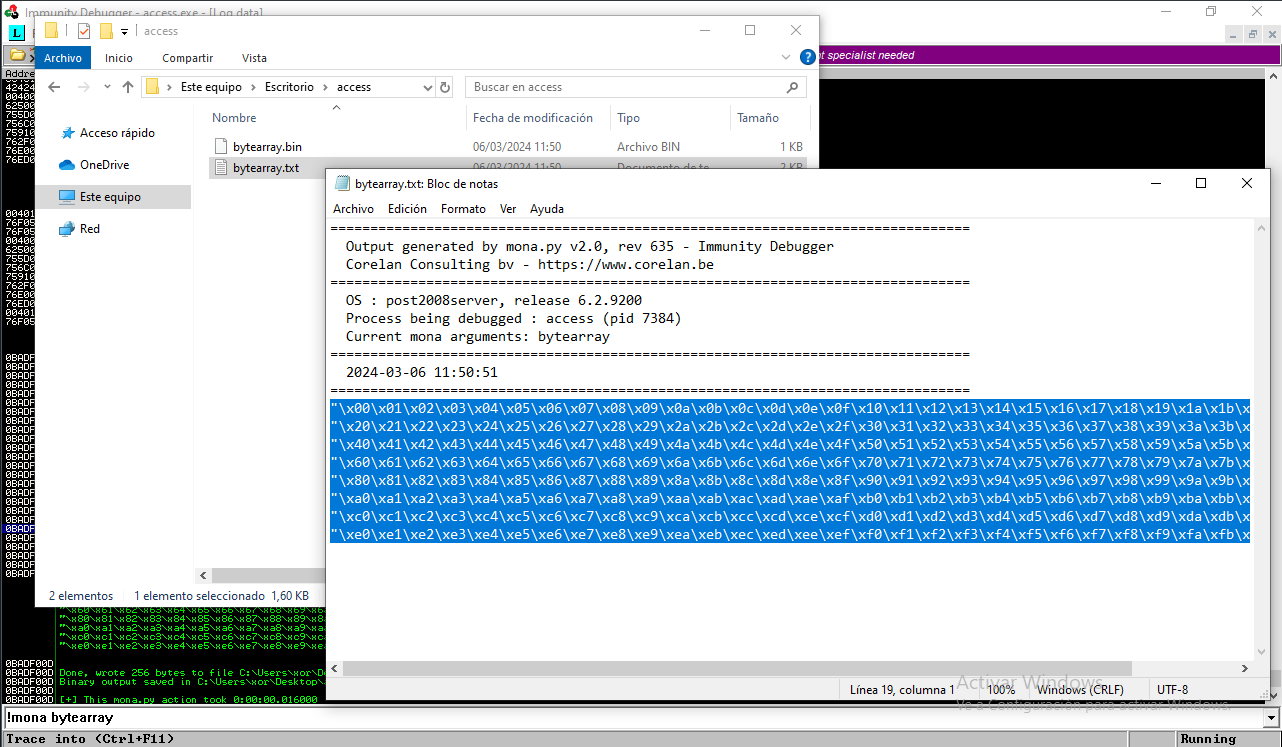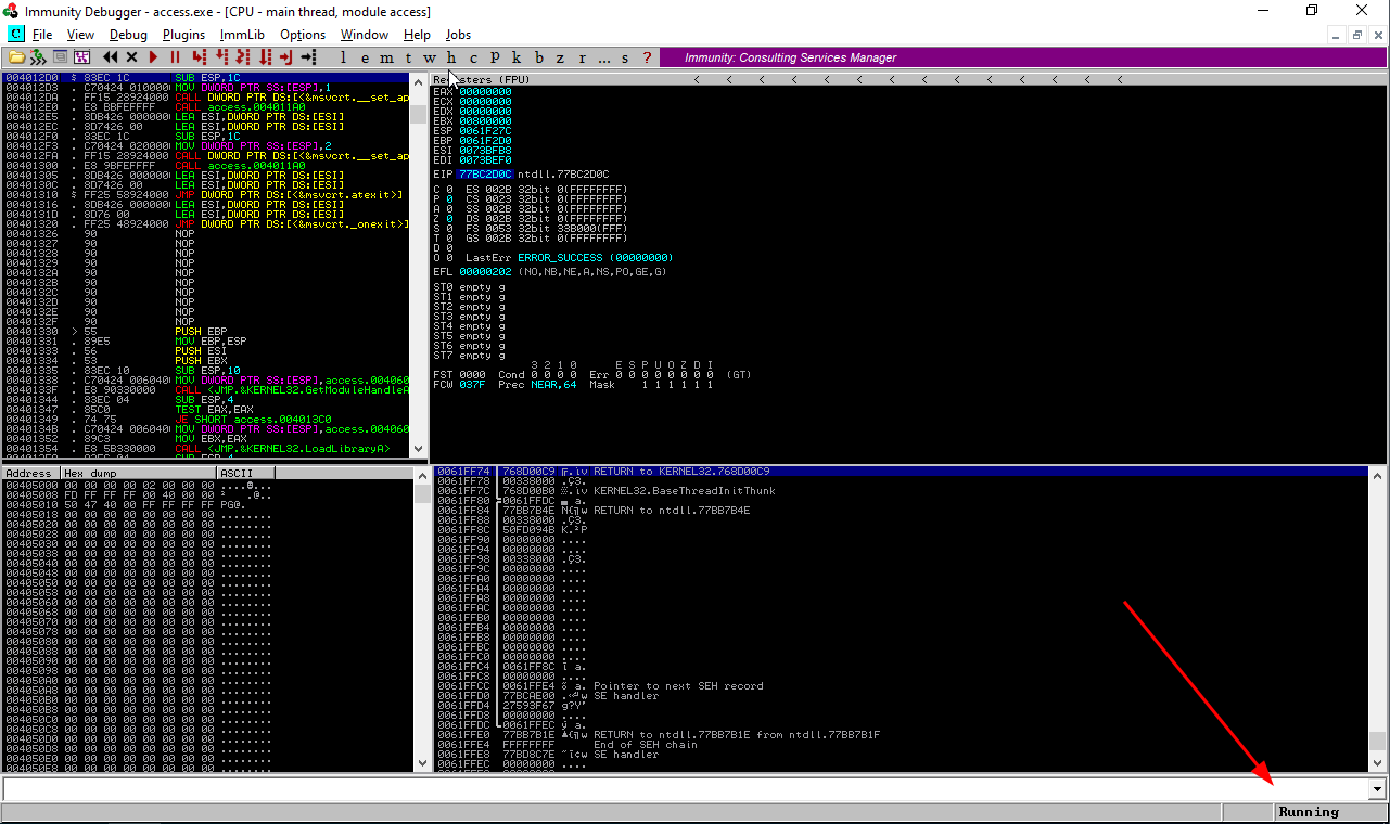 Importante desactivar el DEP de Windows, reinicie. Y ahora sí, ejecute su Immunity debugger y habra el access.exe.