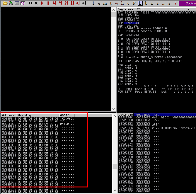 Por esto mismo entra el JMP ESP, lo que significa que buscaremos un código de operación de tipo JMP ESP. Este tipo de operación realiza un salto al ESP 👀.