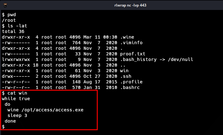 Después me topé que podía entrar a la carpeta /root. No podía hacer mucho ahí, pero pude ver esto: