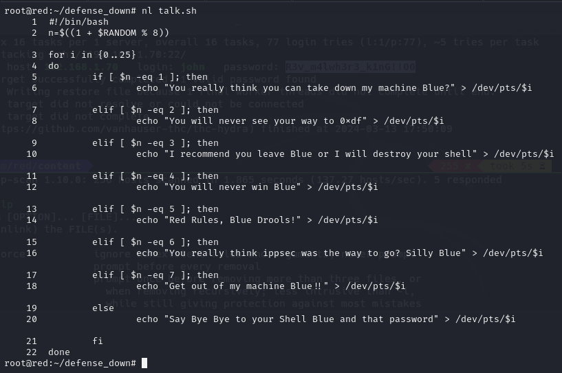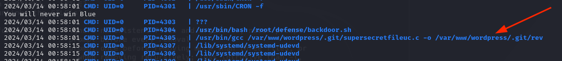 Interesante, ¿no crees? Anteriormente, les comentaba que el llamado Red está todo el tiempo spawneado mensajes en la terminal y este mensaje que imprime el binario rev ya lo había visto. Eso me hace pensar que hay una tarea cron ejecutando este binario.