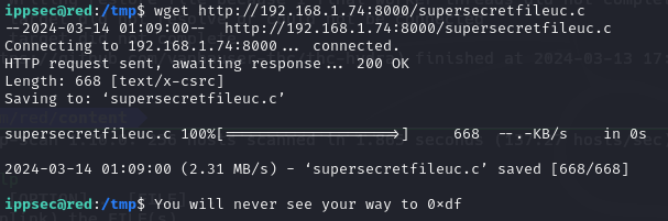 Hasta que en algún momento mire el usuario con uid=0 compilo el archivo supersecretfileuc.c y ejecuto como rev.